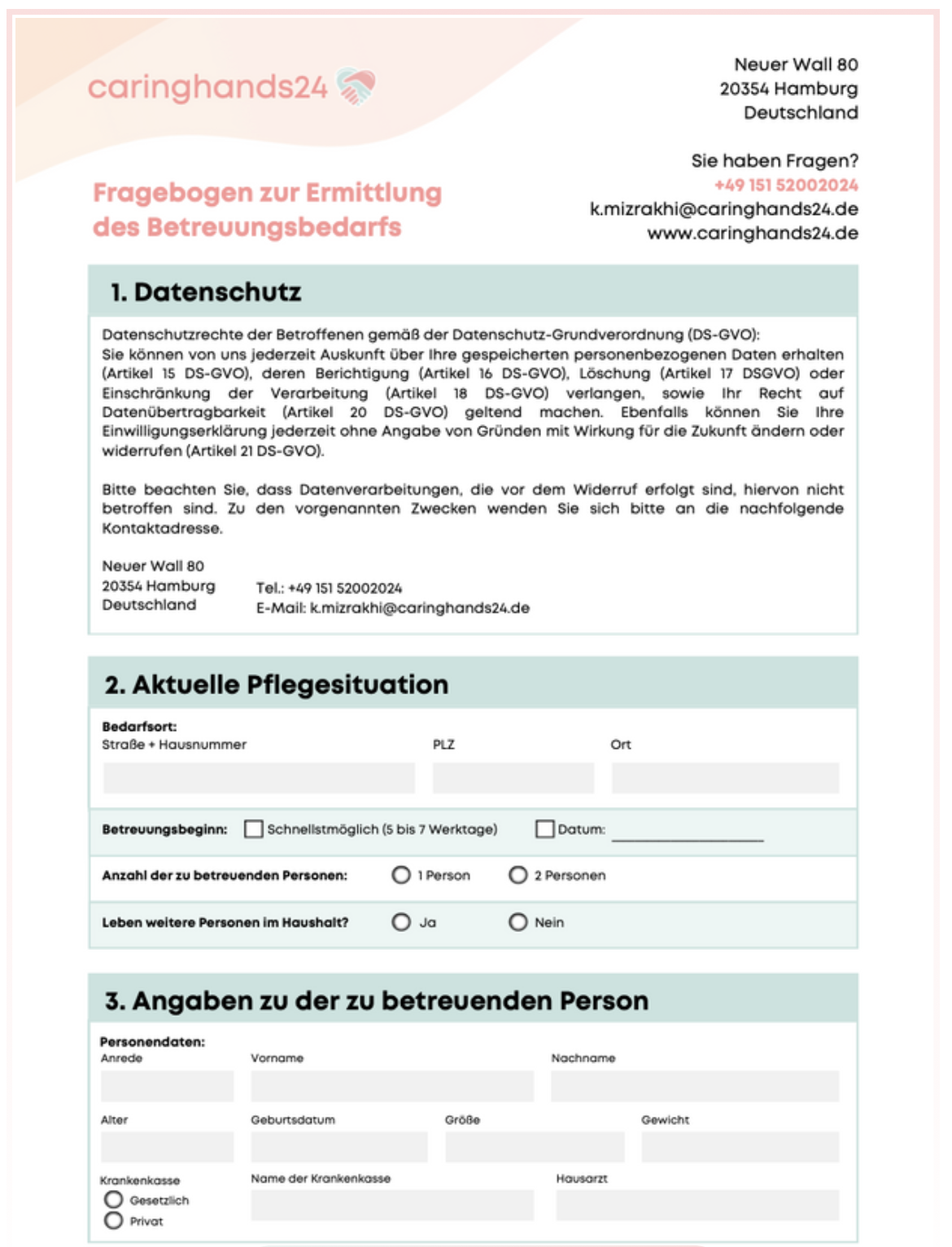 Lassen Sie uns gemeinsam herausfinden, wie caringhands24 auch Ihrer Familie helfen kann.